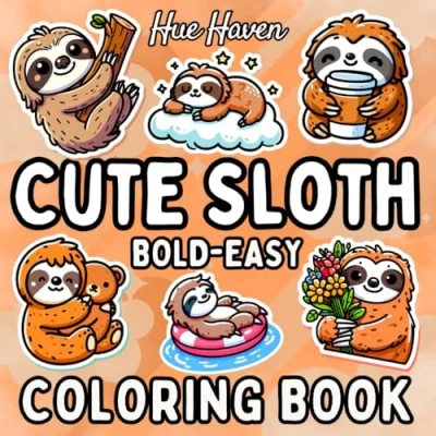 Cute Sloth: Bold and Easy Coloring Book for Kids Adults, Simple Stress Relief Sloth Designs.