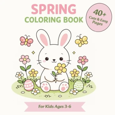 Cute Spring Coloring Book for Kids Ages 3 6: Fun and Easy Pages with Animals, Flowers Easter Eggs Toddlers Preschool