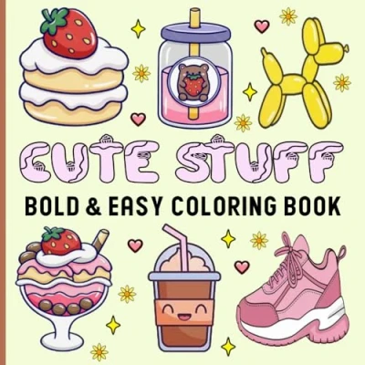 Cute Stuff Coloring Book: Bold & Easy Designs for Adults and Kids with Simple Big Illustrations Relaxation Featuring Super Items, Things More.