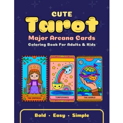 Cute Tarot Cards Major Arcana: Bold and Easy Kawaii Coloring Book for Adults Kids Teens, Big Simple Designs Relaxation Stress Relief, Guided (Bold & Books)