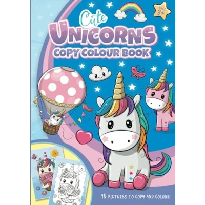 Cute Unicorns Copy Colour Book: For girls and boys, aged 3 up.: A4, 15 super adorable unicorn images to look at copy.