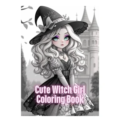 Cute Witch Girl Coloring Book: 30 Adorable Themed Grayscale Pages for Relaxation and Creative Fun