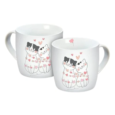 Like a hug with velvet paws, the first sip of your favorite morning drink from this mug feels like. The cute cat motif on the Cutie Cats mug 300 ml gives you the necessary dose of energy for a good start to the day. The mug with the lovely cat couple is microwave and dishwasher safe and an absolute must-have for cat fans. Product details: material: porcelain. Contents: approx. 300 ml. Height: approx. 8.5 cm, diameter approx. 8.5 cm | With printed cardboard packaging | Microwave safe | Dishwasher safe | The item includes only one cup.