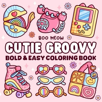 Cutie Groovy: Bold and Easy Coloring Book for Adults Kids Featuring Lovely Things Cute Items, Simple Big Designs Relaxation