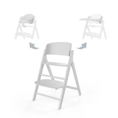 Foldable, high-quality, children's chair, with a long service life, with the included Baby Set is usable from 6 months - 3 years, without attachments from 3 - 99 years, Set includes Baby Set and Tray Ergonomic seating position thanks to adjustable seat height and different seat depths, Effortless adjustment, Special floor gliders for safe movement of the chair, Low weight for easy carrying High Chair that grows with your child: Can be used with Gold Bouncer Nest (sold separately): from birth to 6 months, with Baby Set: from 6 months to approx. 3 years (approx. 15 kg), without additional attachments as a standalone high chair: from 3 years to 99 years Curved backrest for optimal comfort, Easy to assemble, High-quality and stable material processing with beech wood Scope of supply: 1x CYBEX CLICK&FOLD 3-in-1 high chair set (high chair, baby set, tray), Material: beech wood/plastic, Dimensions (LxWxH): 69.9 x 47.3 x 84.3 cm, Weight: 7.7 kg, Color: All White