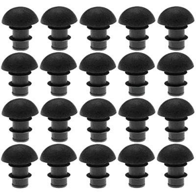 20 x tube tip/hemispherical round cover with slats; material = low density polyethylene (PED); colour = black; outer diameter = 15.5 mm; insert length B = 12 mm; head length C = 6 mm; insert into a hole with a diameter of 7.5 to 9 mm; easy to install, it sinks quickly into the element to be filled