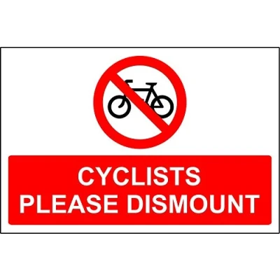 Cyclists please dismount sign 1.2mm rigid plastic 400mm x 300mm