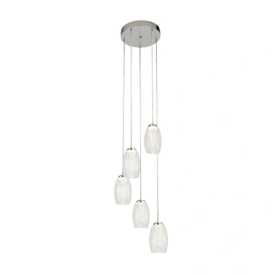 This captivating cluster pendant features five beautiful clear glass shades that harmoniously blend with acrylic accents, all suspended from a sleek chrome central fitting. The combination of materials not only enhances its aesthetic appeal but also ensures durability and timelessness. The chrome finish adds a modern touch, making it suitable for various interior design styles, from contemporary to classic.