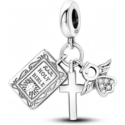 CYCUFF 925 Sterling Silver Charms Suitable for Charm Necklaces, Bracelet Pendants Beads Jewellery Gift Women Family Friends (Bible Cross Charm)