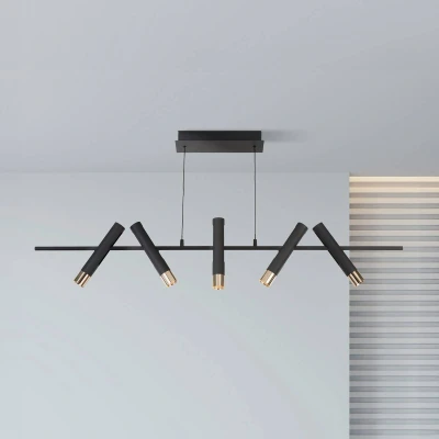 Cylinder 5 Light Bar Ceiling Pendant, Black & Gold