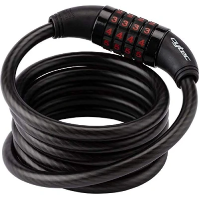 Freely selectable 4-digit combination Steel cable with plastic jacket Length: 180cm Diameter: 10mm Incl. Frame bracket