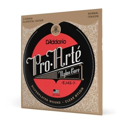 D'Addario EJ45 7 Pro Arte Nylon String Classical Guitar Strings, Normal Tension Core Basses, Laser Selected Trebles Offers Balance of Volume and Comfortable Resistance 1 Set