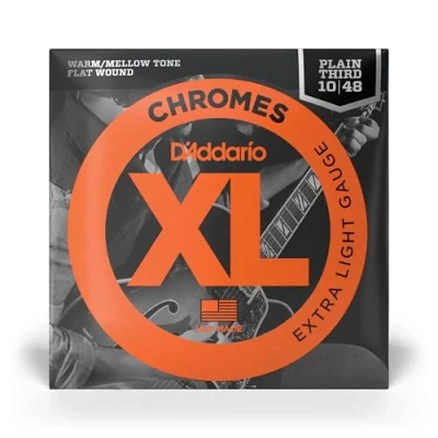 D'Addario Guitar Strings XL Chromes Electric Flat Wound Polished for Ultra Smooth Feel and Warm, Mellow Tone ECG23 PL Extra Light, Plain Third, 10 48, 1 Pack