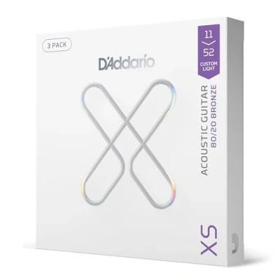 D'Addario Guitar Strings XS 80/20 Bronze Coated Acoustic XSABR1152 3P Maximum Life with Smooth Feel & Exceptional Tone For 6 String Guitars 11 52 Custom Light, 3 Pack