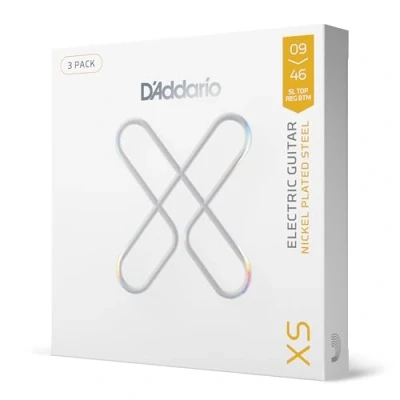 D'Addario Guitar Strings XS Nickel Coated Electric XSE0946 3P Maximum Life with Smooth Feel & Exceptional Tone For 6 String 09 46 Super Light Top/Regular Bottom, 3 Pack
