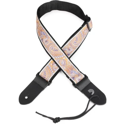 D'Addario Jacquard Ukulele Straps Strap No Drill Paisley, Gray/Orange