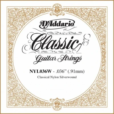 D'addario nyl036w is a .036 gauge silver-plated copper wound single string An ideal replacement string for pro-arte series silver-plated sets or for custom gauge set construction Warm, projecting tone Made in the u.s.a. for the highest quality and performance