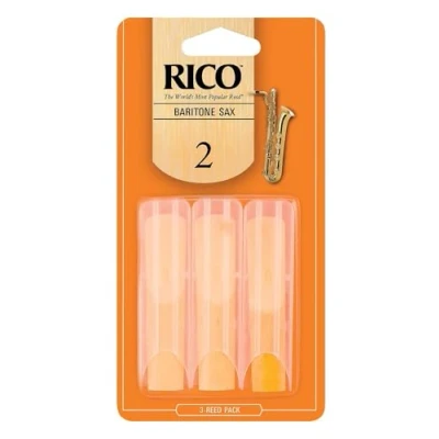 D’Addario Woodwinds Rico Baritone Sax Reeds Saxophone Crafted for Beginners, Students, Educators Strength 2.0, Pack of 3