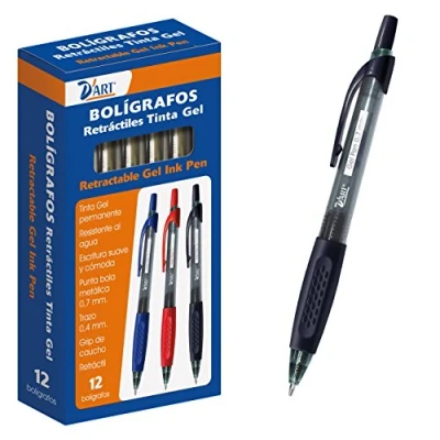Gel ink retractable ballpoint pens color permanent water resistant, plastic body and rubber grip With metal ball tip 0.7 mm Line Width Of 0.4 mm Box of 12 pcs