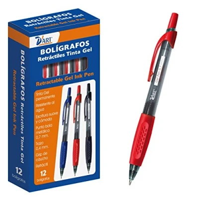 Gel ink retractable ballpoint pens color permanent water resistant, plastic body and rubber grip With metal ball tip 0.7 mm Line Width Of 0.4 mm Box of 12 pcs