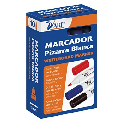 Whiteboard marker with alcohol based ink easy erasing, quick drying, almost odor and xylene free Plastic body, tapered tip with 2 mm stroke. Pack of 10
