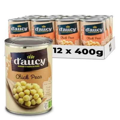 D'Aucy Chick Peas 400g are French-grown, protein-rich chickpeas, harvested at peak maturity, with no added preservatives. Ready to use year-round, they are sustainably farmed, offer quality and traceability, and are suitable for various recipes.