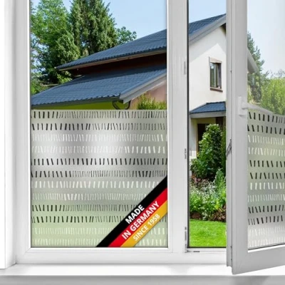 CREATIVE TRANSFORMATION of your glass surfaces: Our self-adhesive window film instantly enhances windows, glass doors, and shower enclosures. Stylish window tint design meets effective privacy protection PRIVACY & LIGHT TRANSMISSION: Our geometric bar design adhesive film offers reliable privacy without blocking daylight. Perfect for living rooms, offices, & bathrooms FLEXIBLE APPLICATION – not just for windows: Our privacy films are also suitable for glass walls, shower enclosures, and conservatories. Beautiful interior design – window covers can be removed without leaving any residue EASY TO CLEAN: To keep your frosted glass film looking fresh, just give it a quick wipe with warm water and a bit of washing-up liquid. Even stubborn marks don't stand a chance UV WINDOW FILM - made in Germany: Sticks without any glue – just cling it on! Easy to remove and reuse, even months later
