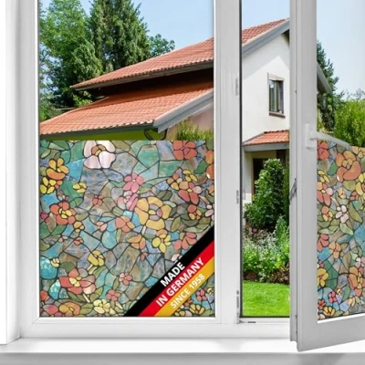 CREATIVE TRANSFORMATION of your glass surfaces: Our self-adhesive window film instantly enhances windows, glass doors, and shower enclosures. Stylish window tint design meets effective privacy protection PRIVACY & LIGHT TRANSMISSION: Our mosaic pattern adhesive film offers reliable privacy without blocking daylight. Perfect for living rooms, offices, & bathrooms FLEXIBLE APPLICATION – not just for windows: Our privacy films are also suitable for glass walls, shower enclosures, and conservatories. Beautiful interior design – window covers can be removed without leaving any residue EASY TO CLEAN: To keep your frosted glass film looking fresh, just give it a quick wipe with warm water and a bit of washing-up liquid. Even stubborn marks don't stand a chance SELF-ADHESIVE WINDOW FILM - made in Germany: It’s got sticky backing, so it sticks straight onto any glass surface – no extra glue needed