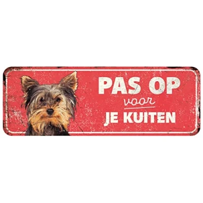 D&D Home, Warning Sign 40 x 13 0.3 cm Dutch Version Red Background Metal Rust Resistant Funny Text