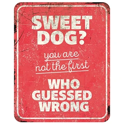 D&D Home, Warning Sign, to the Dog, 25x20x0.2cm, English Version, Red Background, Rust Resistant Metal Sign with Funny Text