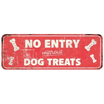 D&D Home, Warning Sign, to the Dog, 40 x 13 0.2 cm, English Version, Red Background, Rust Resistant Metal Sign with Funny Text