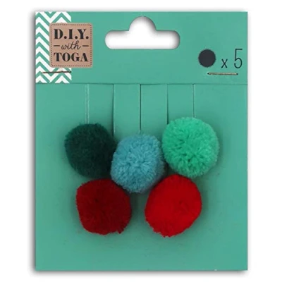 D.I.Y with Toga 5 Round Pompoms, Cotton, Red and Green, 2 cm