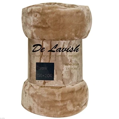 D&L Mink Faux Fur Luxurious Throws Super Soft Warm Cosy Sofa and Bed Fleece Blankets (Tan, Double [150x200cms])