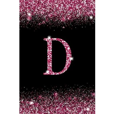 D: Letter D Initial Alphabet Monogram Notebook Monogrammed confetti Writing Journal Printed Glitter Black and pink, Diary Planner Gift For Kids Girls Women