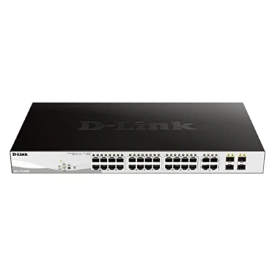 24 Port 10/100/1000 Mbps Network Switch Level 2 and 4 Combo SFP Ports for Fiber Modules or Ethernet Cable 1U Height 24 Gigabit PoE 802.3af/802.3at ports to power surveillance cameras, IP phones or compatible access points, up to 30W per port (370W total) With non-blocking technology and switching capacity of up to 56Gbps without blocking, automatic creation of VLANs for video surveillance and IP telephony D-Link Green Technology: Unused ports do not consume power, and those that do use the minimum required for optimal data transmission Smart Fan fans, to regulate the speed of the same according to the needs of heat dissipation at all times