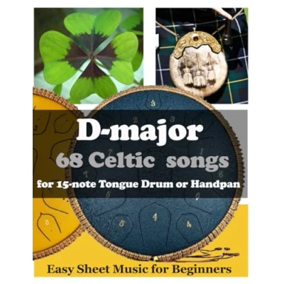 D major 68 Celtic Songs for 15 Note Tongue Drum or Handpan: Easy Sheet Music Beginners