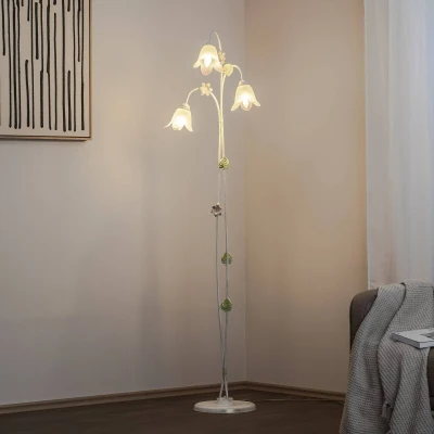 Botton floor lamp: Florentine style meets artistic craftsmanship The Florentine-style Botton floor lamp combines traditional elegance with artistic craftsmanship. Made from high-quality iron and glass, it exudes a timeless beauty that will enhance any living or dining area. The combination of white, silver, pink and green shades gives the light a lively yet harmonious look. The 3-bulb design provides even and pleasant lighting, creating a warm and inviting atmosphere. A special feature of this light is its European manufacture, which guarantees the highest quality standards. The Botton floor lamp is not only a lighting object, but also a decorative element that fills the room with a touch of Florentine charm. Ideal for those who value stylish and durable furnishings, this light offers a perfect symbiosis of functionality and aesthetics.