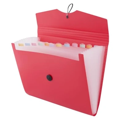 D.RECT A4 Document File Folder 12 Pocket Organizer with Colour Labels Red PP Storage Elastic Closure Durable Expanding for School, Office & Home
