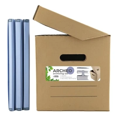 D.RECT ARCHEO Archiving Set with Storage Box and 3 Pastel Zero Max Adjustable Binders Archive Box, Eco Friendly Office & Home Organizer 250x340x260 mm Blue
