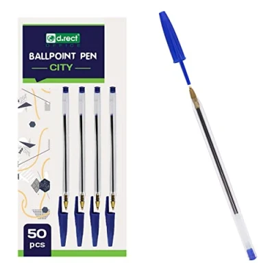 D.RECT City Ballpoint Pens Pack of 50 Transparent Lid Tungsten Carbide Ball Comfortable Ballograf Blue