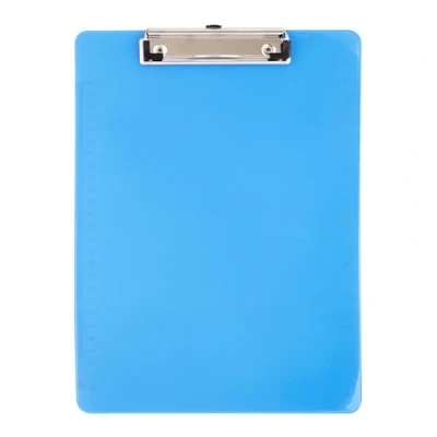 Hardboard made of transparent plastic in two smoked glass and blue tones - random colour Perfect for outdoor use or as a pad for notes at business meetings, training and conferences Strong clip with rubber corners holds sheets securely in place With eyelet for hanging the clipboard, e.g. in warehouses, shops, etc Ruler 25 cm with millimetre division on the left, ruler 10 inch with 1/10 inch division on the right. Rounded corners. Format: A4