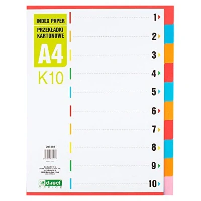 D.RECT K10 Index Dividers Cardboard for Folders DIN A4 10 Pieces Made of 1 9398