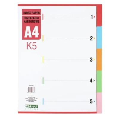 D.RECT K5 Index Dividers Cardboard Folder DIN A4 Various Colours 5 Pieces Made of 1