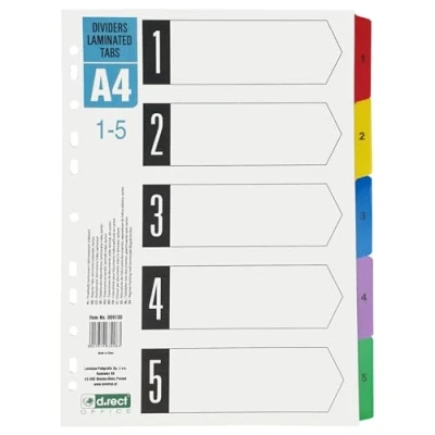 D.RECT Subject File Dividers A4 Coloured Index Tabs 1 5