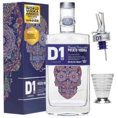 Velvet Smooth Flavour To Tantalise Your Taste Buds – D1 Potato Vodka delivers a creamy mouthfeel with buttery sweetness, balanced by vegetal, herbaceous and spicy notes. This premium vodka 70cl bottle makes an indulgent spirit for mixing cocktails, enjoying with tonic, or celebrating life’s special moments. 2025 World’s Best British Vodka Award Winner – Winner of the World Drinks Awards Gold for three consecutive years. The iconic skull design by Jacky Tsai ensures this bottle stands out among cool vodka bottles, making it a show-stopping choice for collectors and those browsing unique flavoured vodka. Superb Purity From a Unique Distillation Process – Distilled from the finest potatoes and refined through over 2,000 purification plates, this potato vodka achieves unmatched clarity and smoothness. A remarkable option for vodka lovers seeking originality, craftsmanship, and a super-premium taste experience. Pure, No Artificial Flavours Or Sweeteners, Vegan Friendly, Gluten Free – Not just another skull vodka design, but a flavour journey of toasted sourdough, sage and buttery Jersey Royals. A memorable tasting experience that also makes a unique alcohol gift set vodka for enthusiasts. Gorgeous Gift For All Vodka Lovers – Searching for thoughtful surprises? This beautifully presented vodka gift set is perfect for Father’s Day, milestone birthdays, anniversaries, or festive occasions. A classy vodka gift designed to impress, making it the ultimate choice for vodka gifts for women or men.