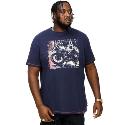 D555 Mens Bronson Big Tall Customs Motorbike Print T Shirt Top 5XL Navy