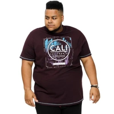 D555 Mens Nova Big Tall Cali Surf Print Short Sleeve T Shirt Top 5XL Plum