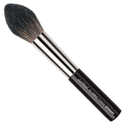 MATERIAL: ✪ extra fine goat hair ✪ so-called "silver ferrule" ✪ black high-gloss lacquered, comfortable wooden handle This powder brush is ideal for applying compact and loose powder Due to the pointed shape every part of the face can easily be reached No scattering of powder during application Quality product „handmade in Germany“