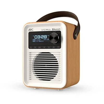 DAB, DAB+ & FM Radio with Bluetooth, USB Micro SD Card Mains and Builtin Battery Powered Portable Digital Arc Audio One Oak