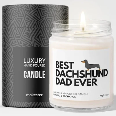 Dachshund Gifts for Men 220g Soy Wax with Madagascan Vanilla, Jasmine & Sugared Almond Candle by Makester